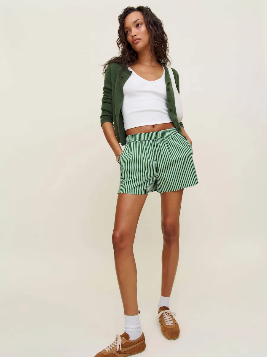 The model is wearing a size XS and has a 23″ waist, 34″ hips.
