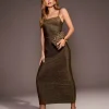 The model is wearing a size 0 and is 5’9″, 24″ waist, 34″ hips, 32″ bust.