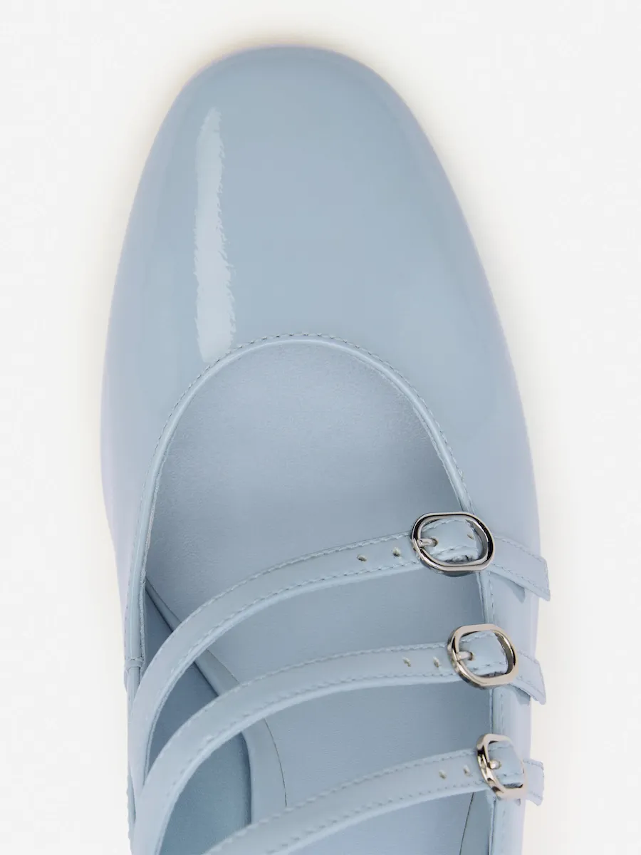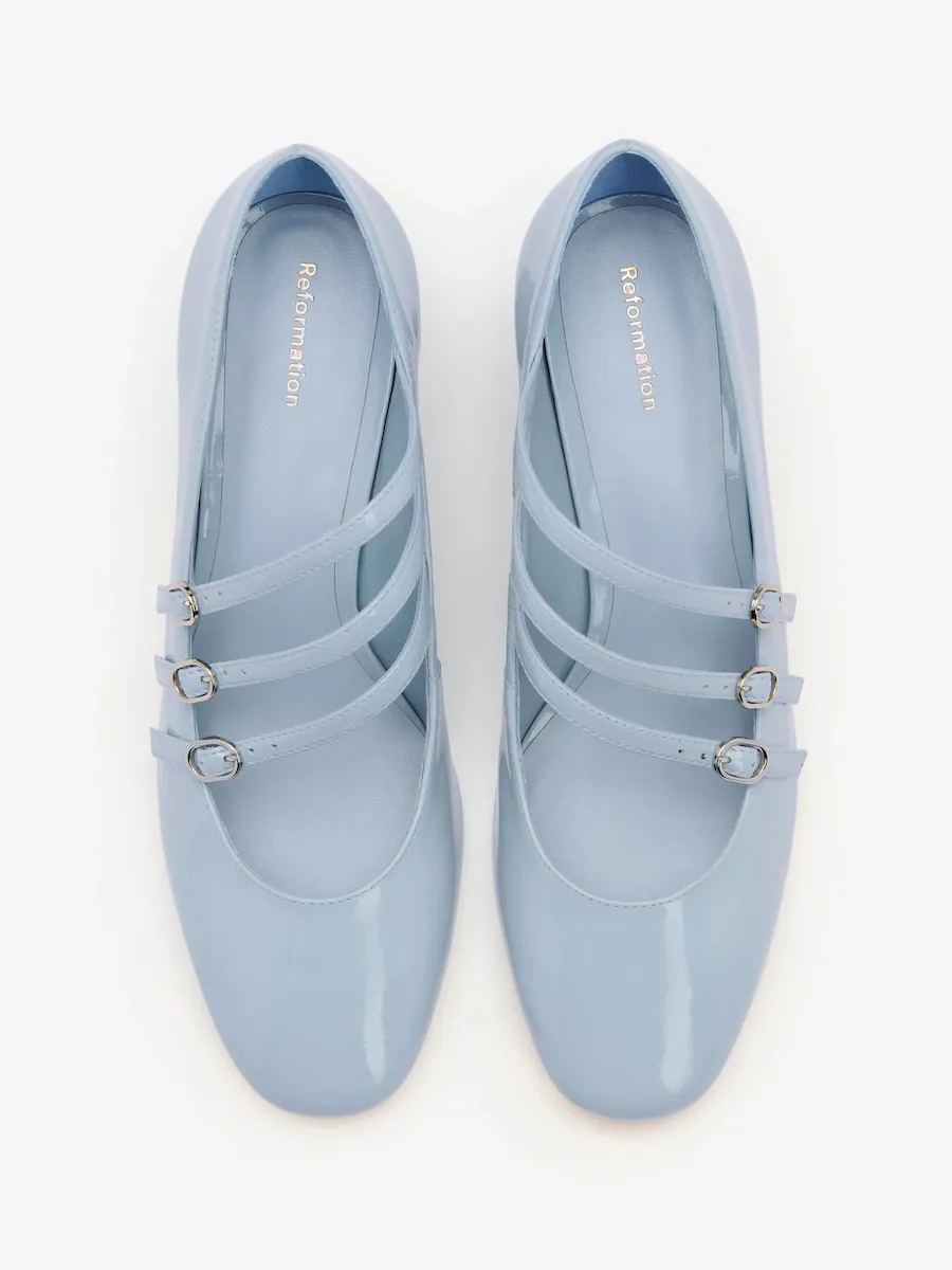 Bovine leather with lustrous patent finish. Spot clean. More onfabric & care.