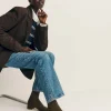 Bovine leather with lustrous patent finish. Spot clean. More onfabric & care.