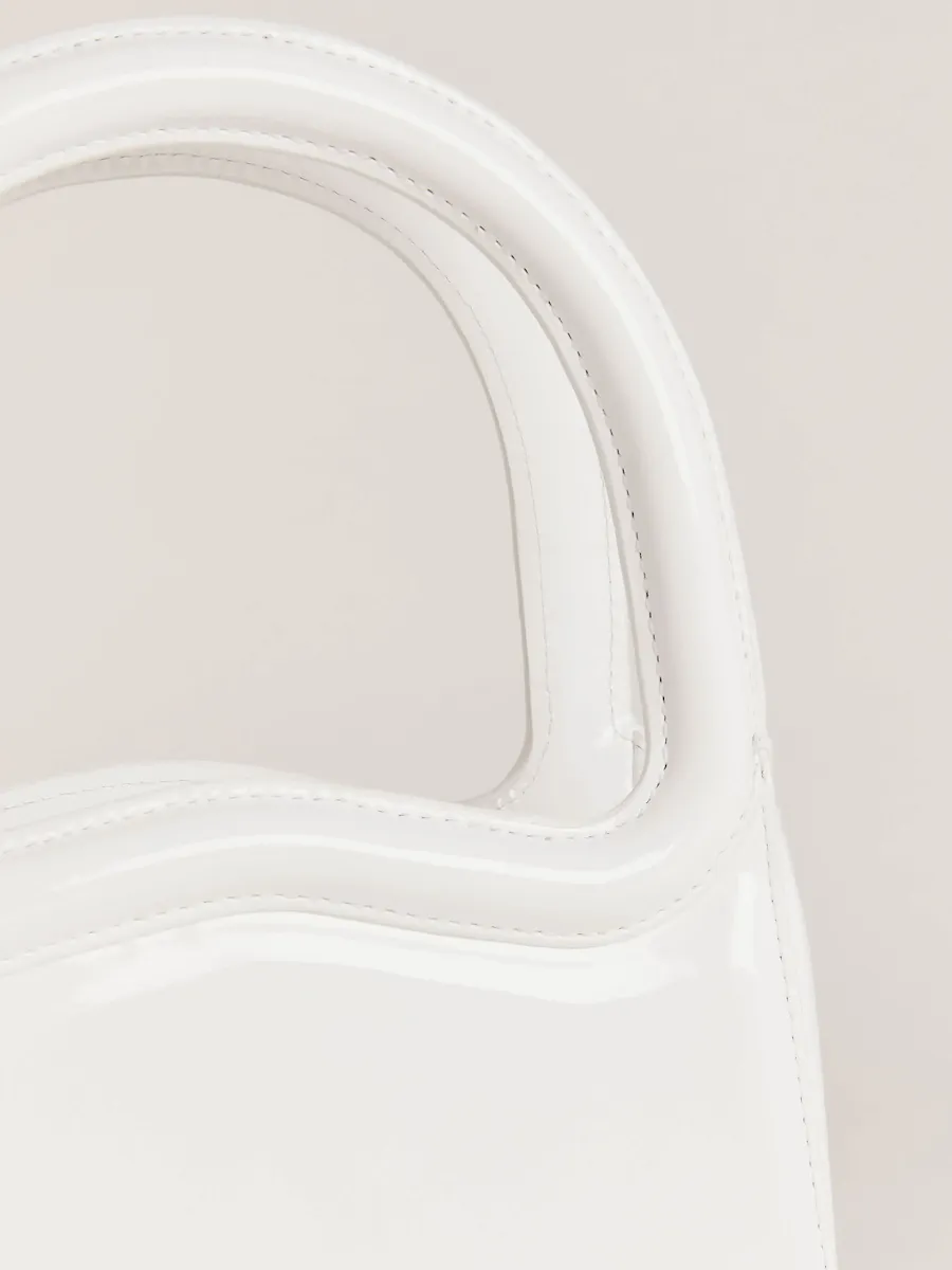 Flexible and rich patent leather. Spot clean. More onfabric & care.