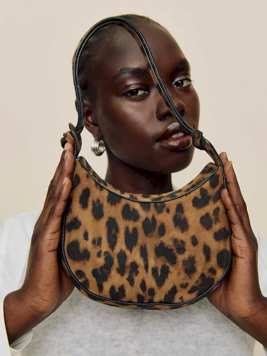 High-quality delicate nap, sheep suede with leopard print. Spot clean. More onfabric & care.