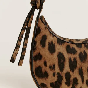 crescent shaped leather shoulder bag with a decorative tie detailand interior pockets.