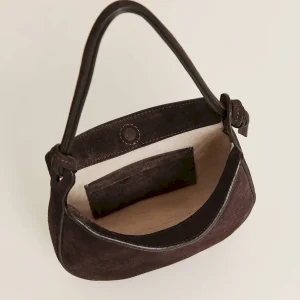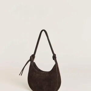 crescent shaped leather shoulder bag with a decorative tie detailand interior pockets.