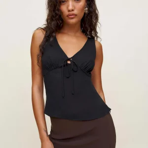The model is wearing a size 0 and is 5’10”, 23″ waist, 34″ hips, 32″ bust.