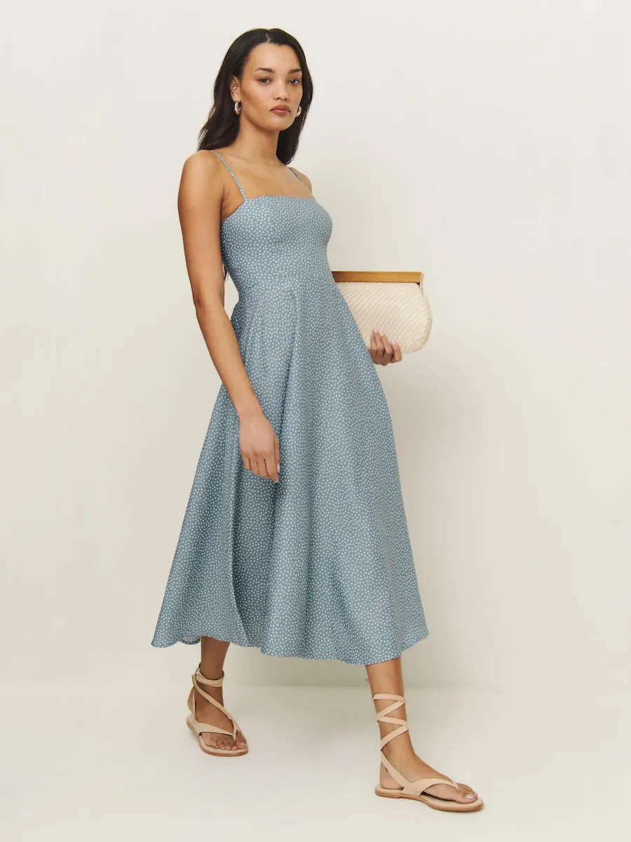 adjustable straps, straight neckline.