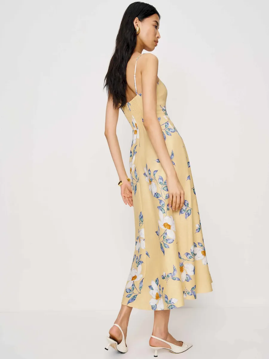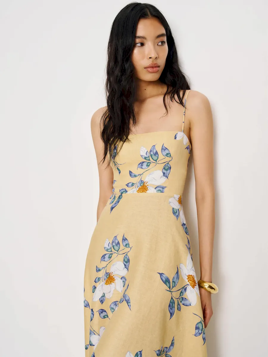 This is a lightweight linen fabric – 100% linen. Wash cold + line dry. More onfabric & care.