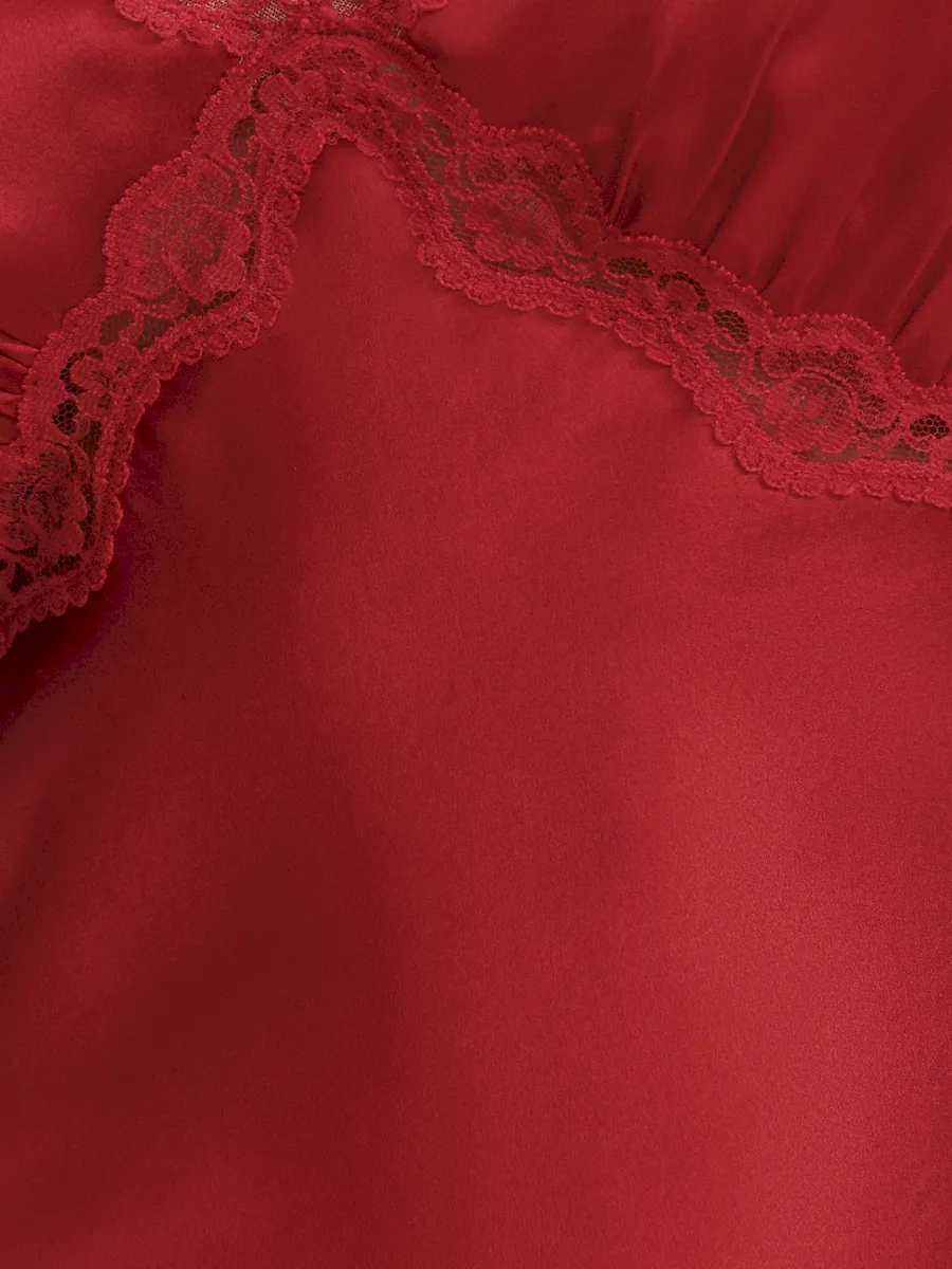 This is a lightweight silk charmeuse fabric – 100% silk. Dry clean only. More onfabric & care.