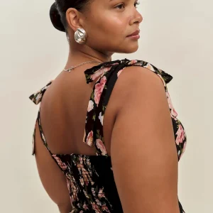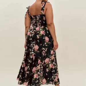 back smocking, tie straps, sweetheart neckline.