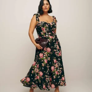 The model is wearing a size 14 and is 5’8″, 33″ waist, 50″ hips, 42″ bust.