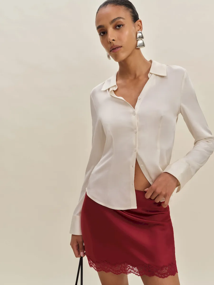 Made with 60% wood pulp and 40% repurposed waste. Feels way smoother and sexier than it sounds. Meet Naia™️ Renew, our silk alternative that cuts carbon and other harmful impacts of silk without changing any of the stuff you love about it.