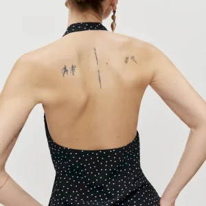 The model is wearing a size XS and is 5’10”, 25″ waist, 34.5″ hips, 31″ bust.