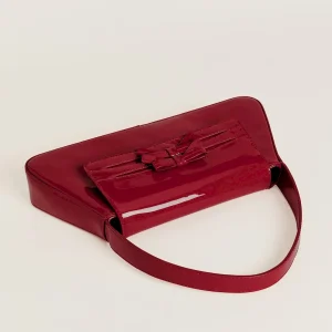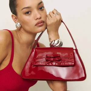 Flexible and rich patent leather. Spot clean. More onfabric & care.