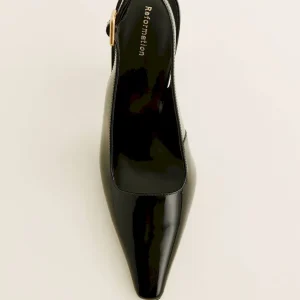 Bovine leather with lustrous patent finish.