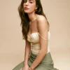 The model is wearing a size XS and is 5’9″, 25″ waist, 35″ hips, 32″ bust.