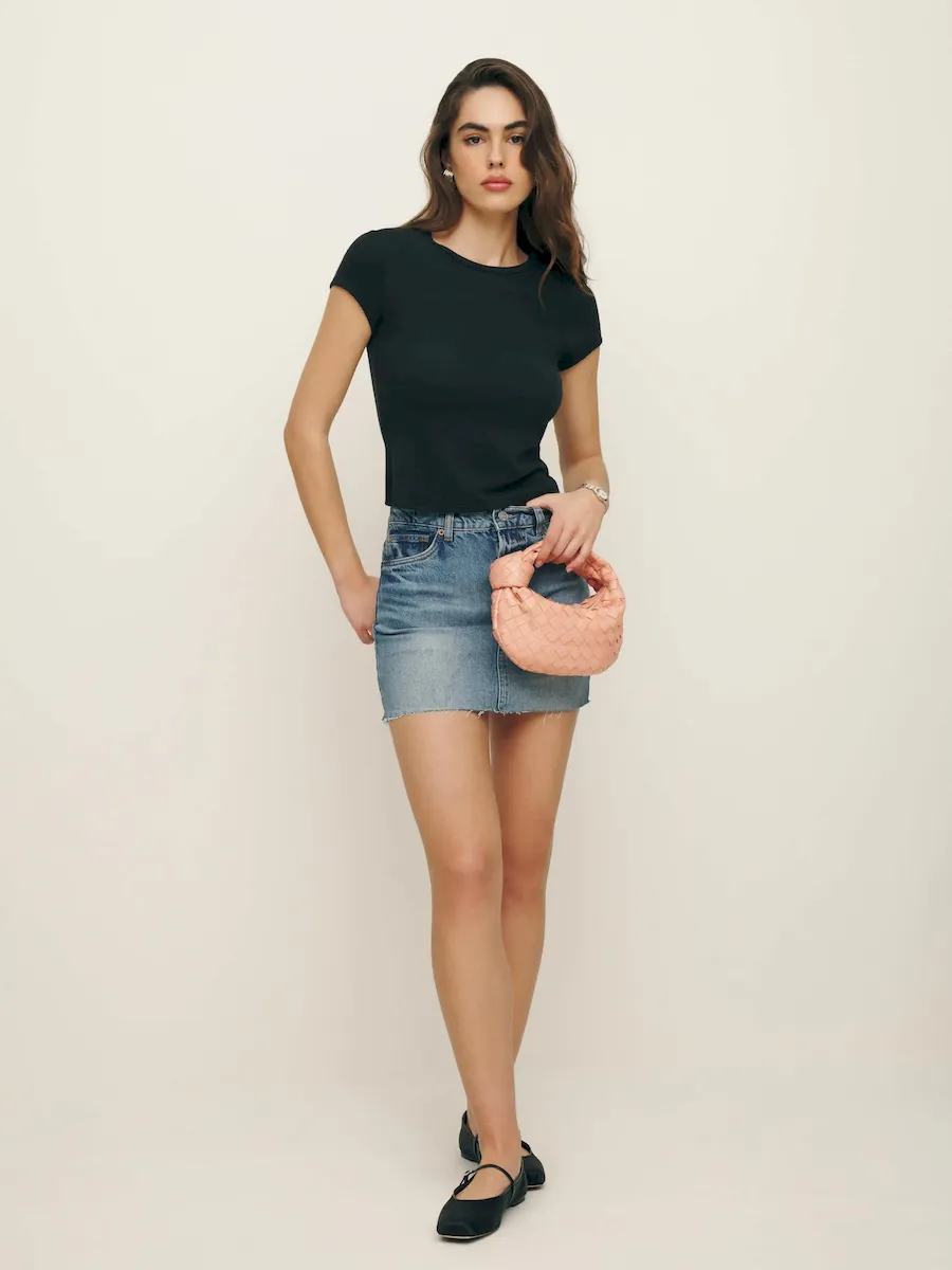The model is wearing a size XS and is 5′ 9.5″, 24″ waist, 34.5″ hips, 34″ bust.
