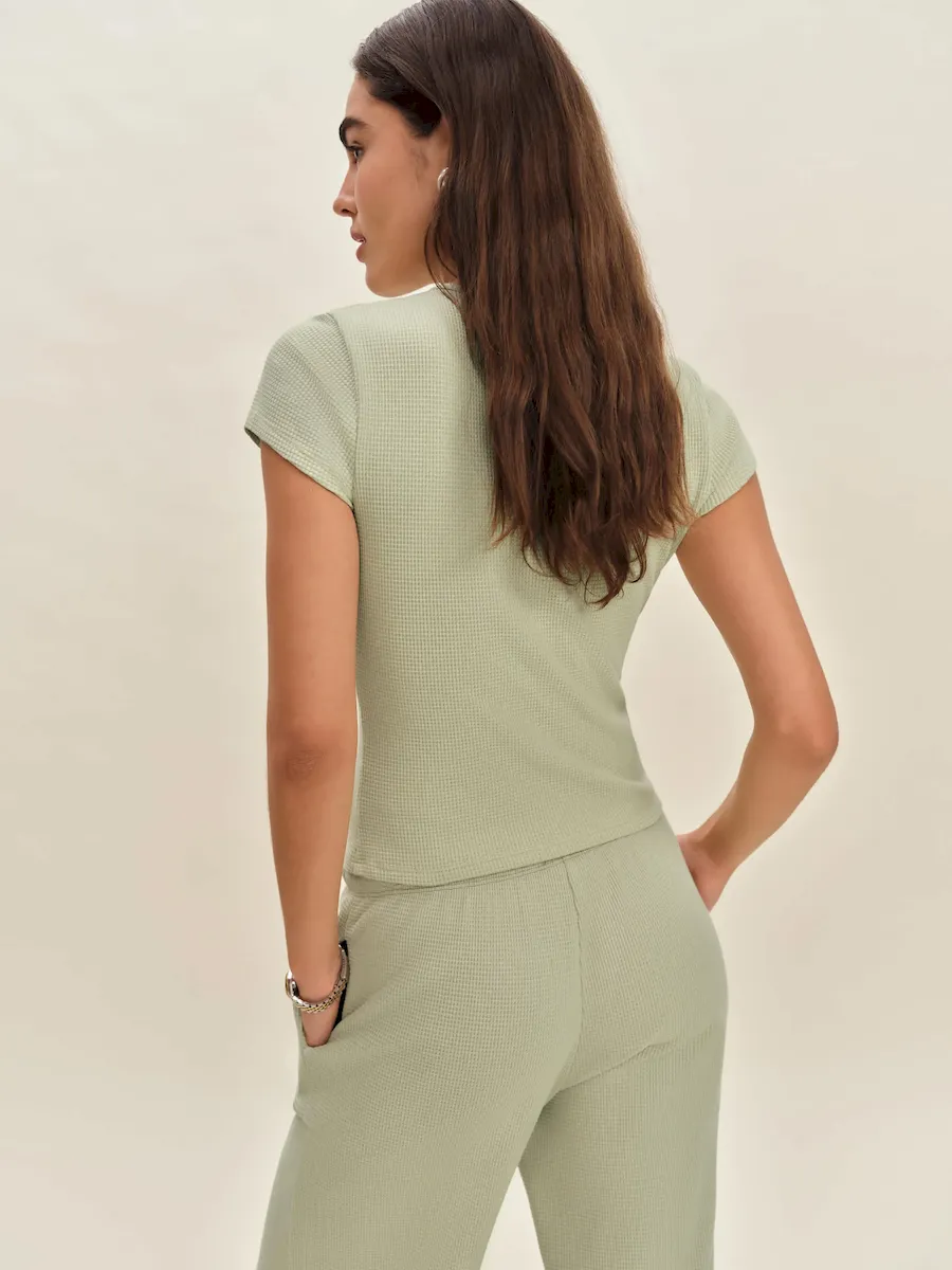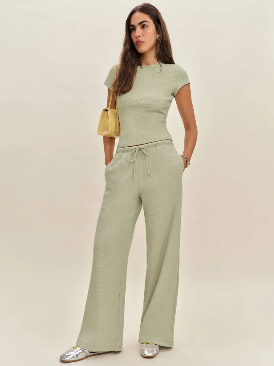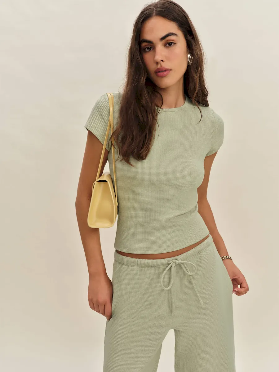 This is a waffle knit fabric made with 98% Cotton and 2% Spandex. Machine wash cold, do not bleach, tumble dry low, do not iron, do not dry clean. More onfabric & care.