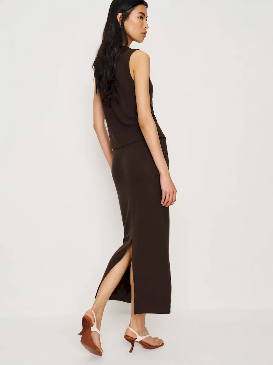 The model is wearing a size XS and is 5’9″, 24″ waist, 34″ hips, 30″ bust.
