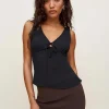non-adjustable straps, v-neck.