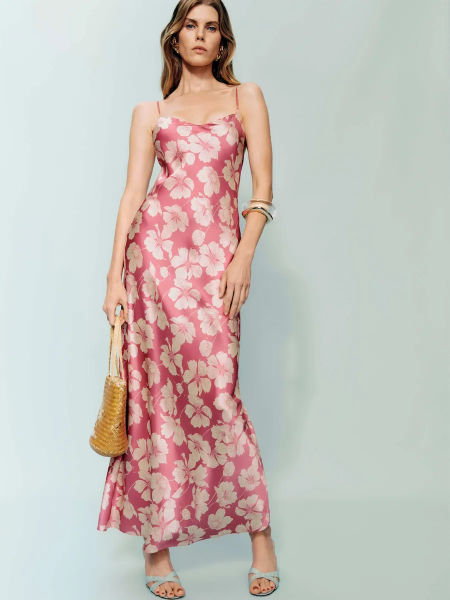 This is a lightweight silk charmeuse fabric – 100% silk. Dry clean only. More onfabric & care.