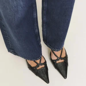 Made from a croc-embossed bovine leather. Spot clean. More onfabric & care.