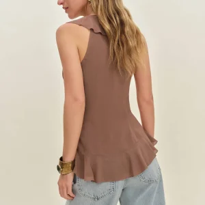 The model is wearing a size 0 and is 5’7″, 23″ waist, 34″ hips, 32″ bust.
