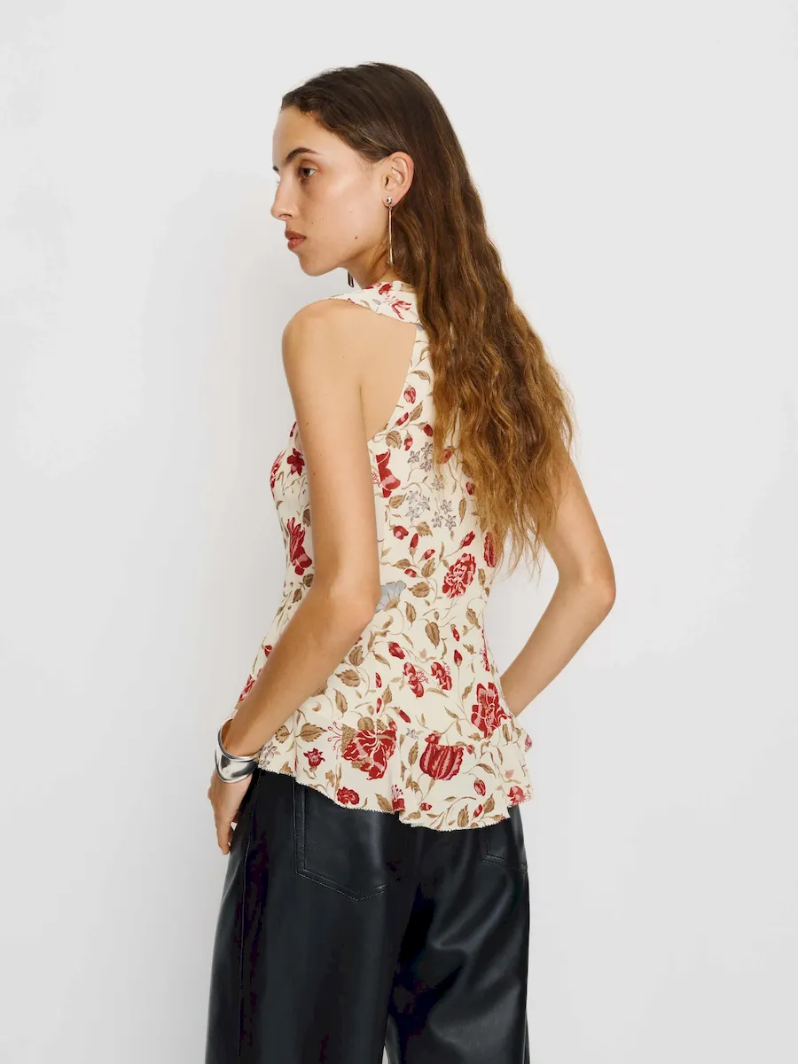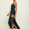 The model is wearing a size 0 and is 5’9″, 24″ waist, 34″ hips, 30″ bust.