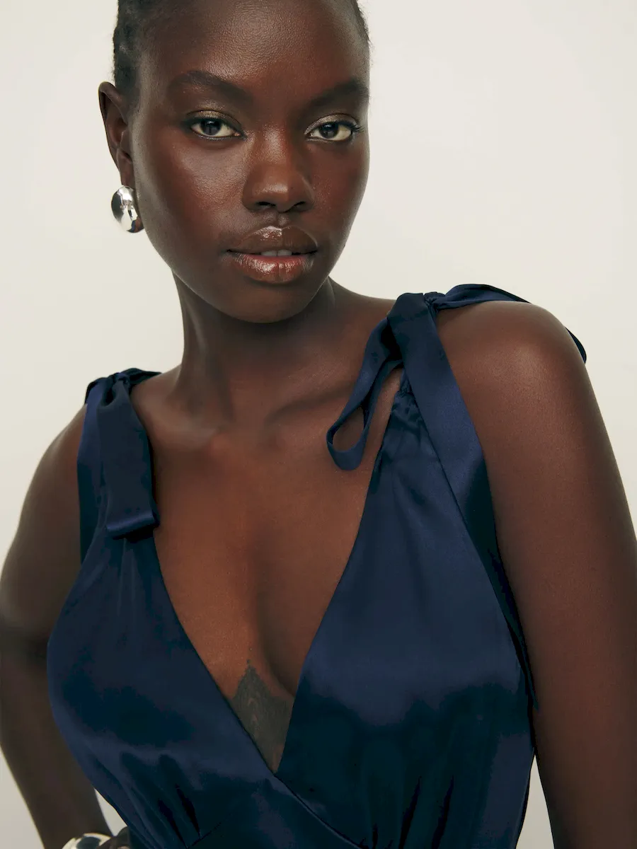 This is a lightweight silk charmeuse fabric – 100% silk. Dry clean only. More onfabric & care.
