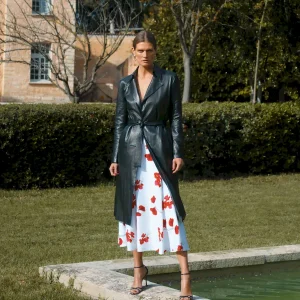 The model is wearing a size 0 and has a 23″ waist, 34″ hips.