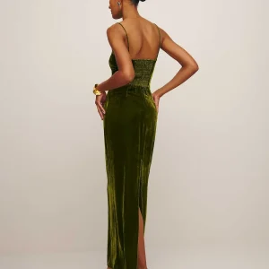This is a soft, non-stretch velvet with a medium pile – 82% rayon, 18% silk Dry clean only. More onfabric & care.