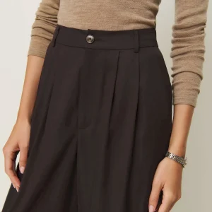 belt loops,front buttons,finished hem,pleated details,side pockets,and zipper fly.