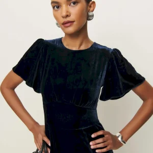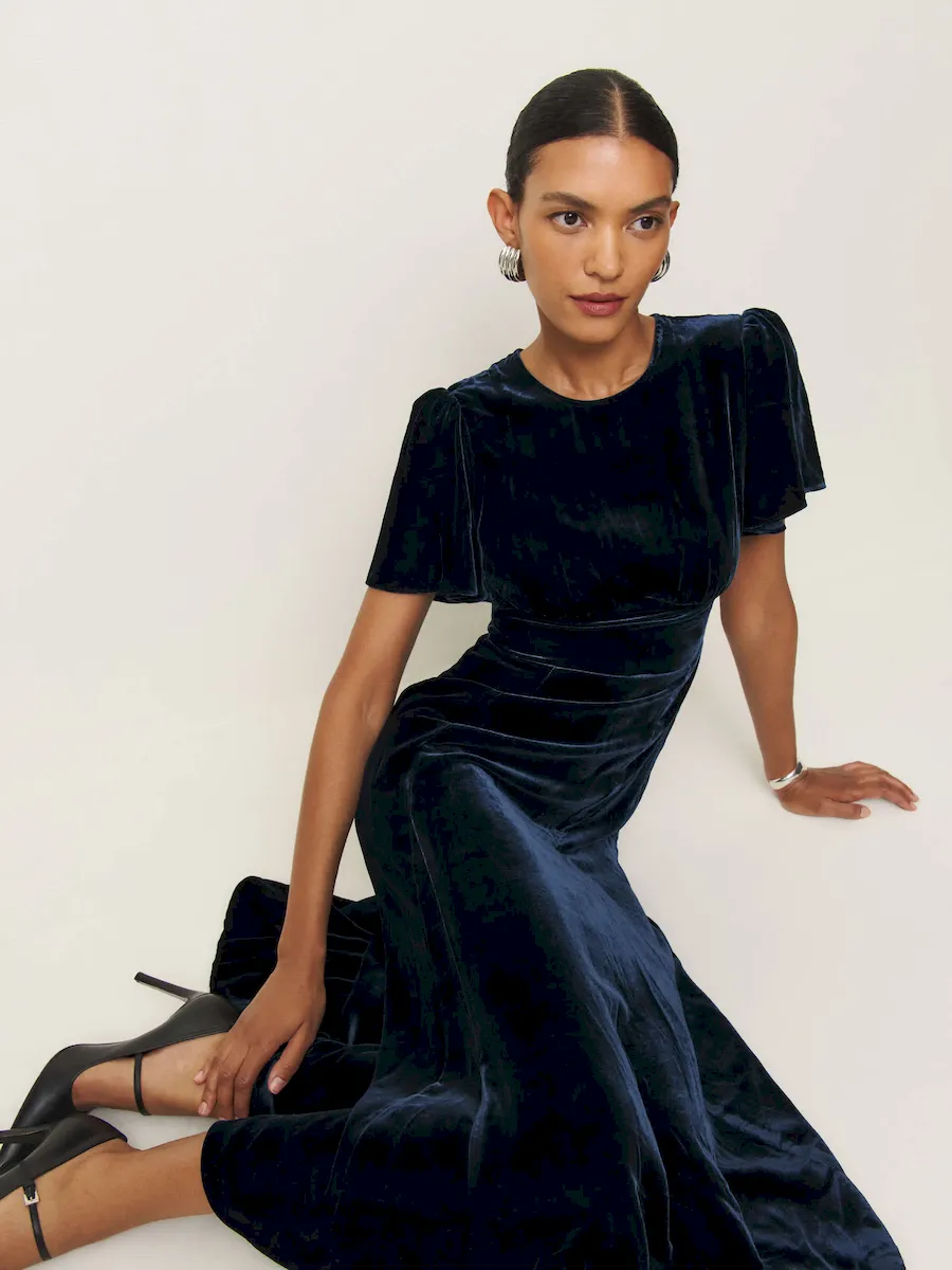 This is a soft, non-stretch velvet with a medium pile – 82% rayon, 18% silk. Dry clean only. More onfabric & care.