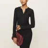 The model is wearing a size XS and is 5’9″, 23.5″ waist, 34″ hips, 34″ bust.