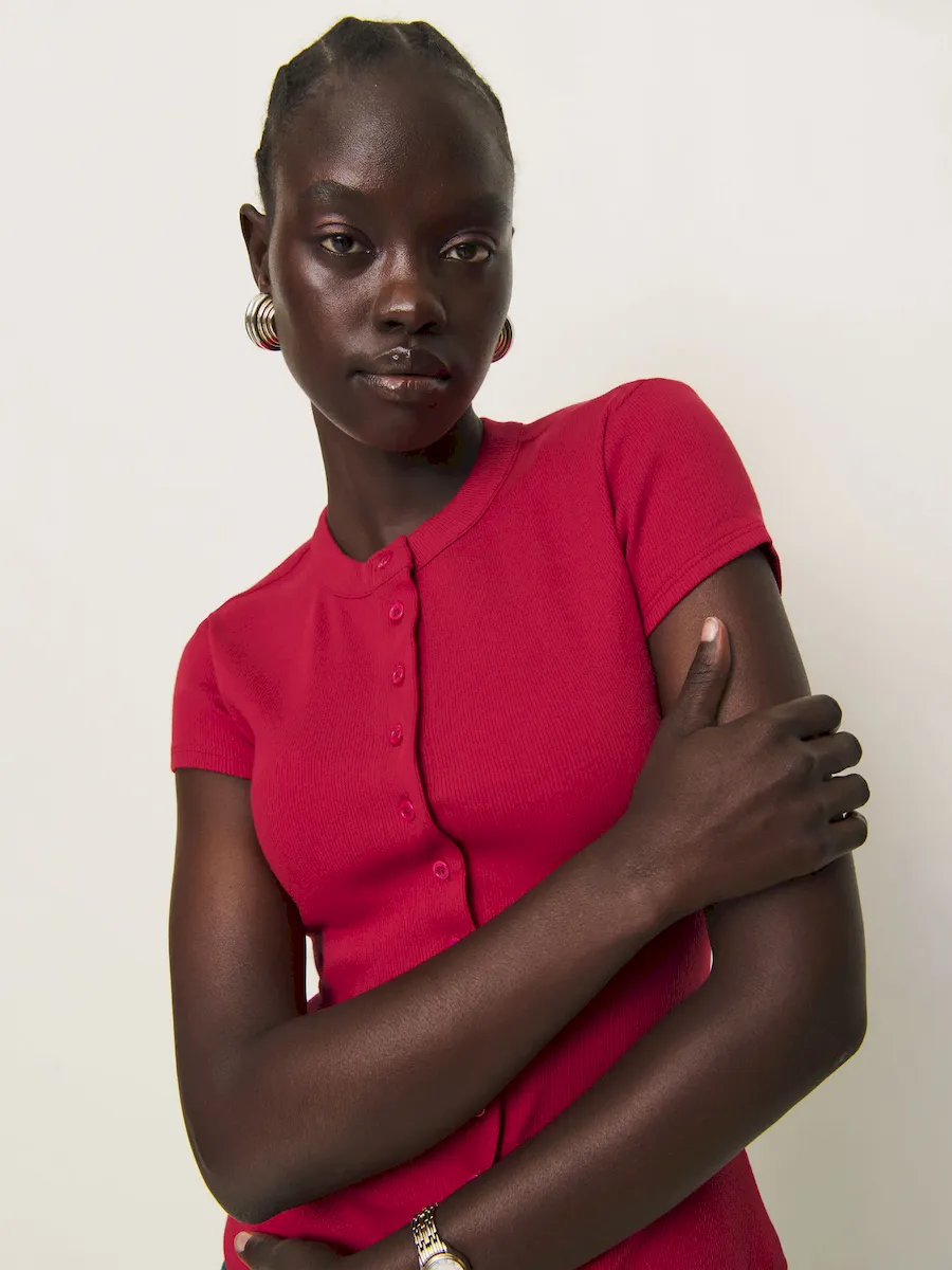 This is a 2×1 medium weight rib knit fabric with moderate stretch made from 97% Organically Grown Cotton and 3% Spandex. Wash cold / tumble dry low. More onfabric & care.