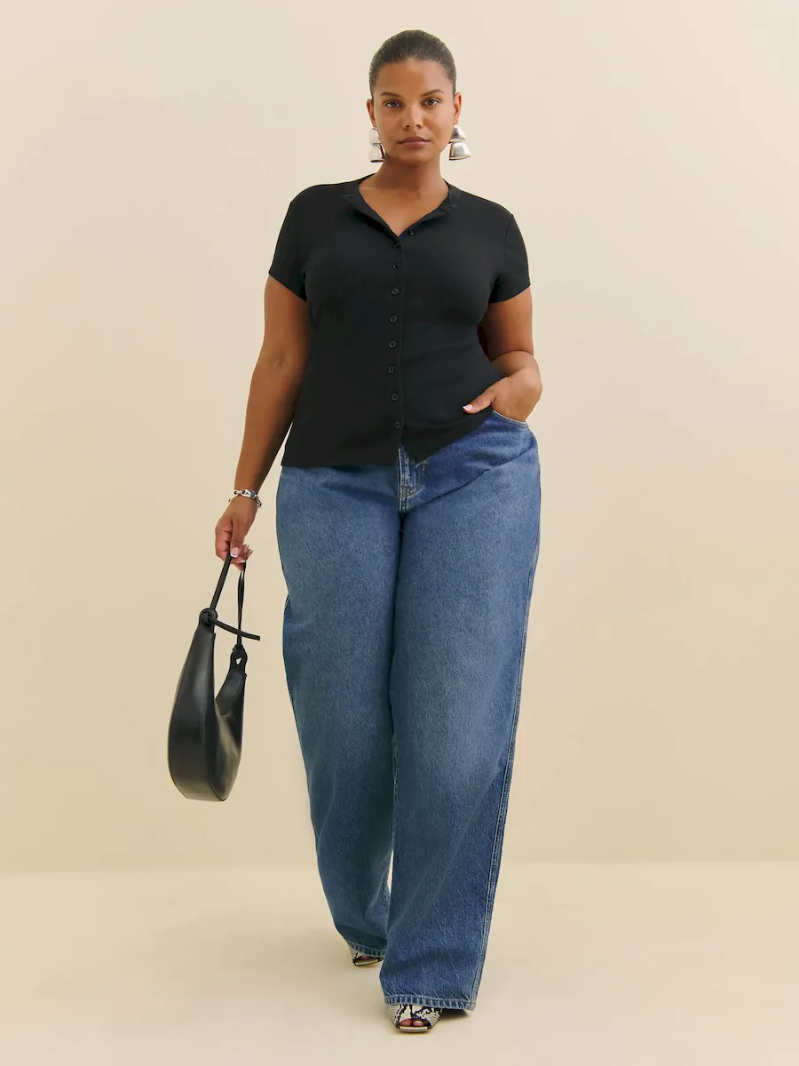 The model is wearing a size 1X and is 5’8″, 33″ waist, 50″ hips, 42″ bust.