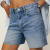 The model is wearing a size 25 and has a 25″ waist, 35″ hips.