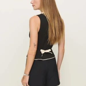 The model is wearing a size 0 and is 5’11”, 24″ waist, 35″ hips, 31″ bust.