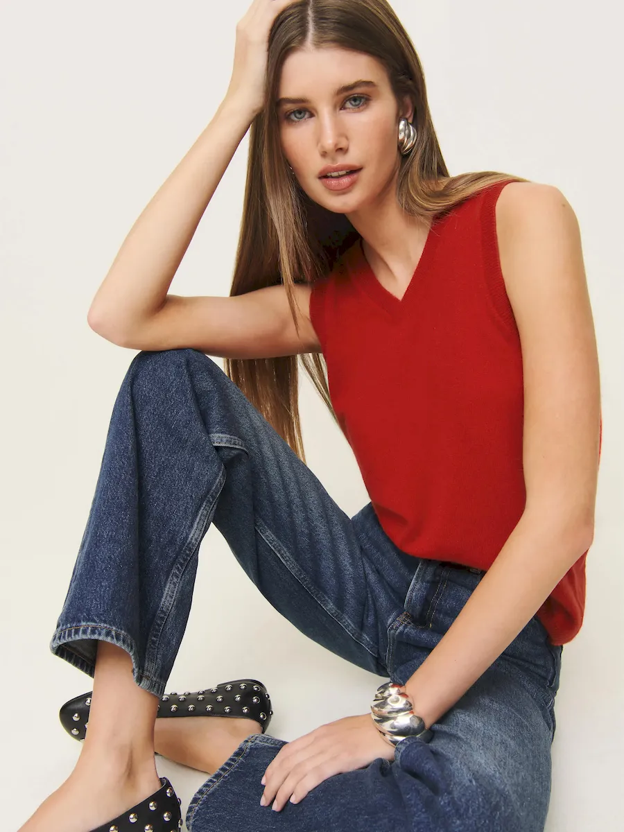 This is a fine-gauge recycled cashmere blend sweater knit – 95% Recycled Cashmere, 5% Cashmere. Hand wash + dry flat. More onfabric & care.