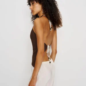 The model is wearing a size 0 and is 5’10”, 23″ waist, 34″ hips, 32″ bust.