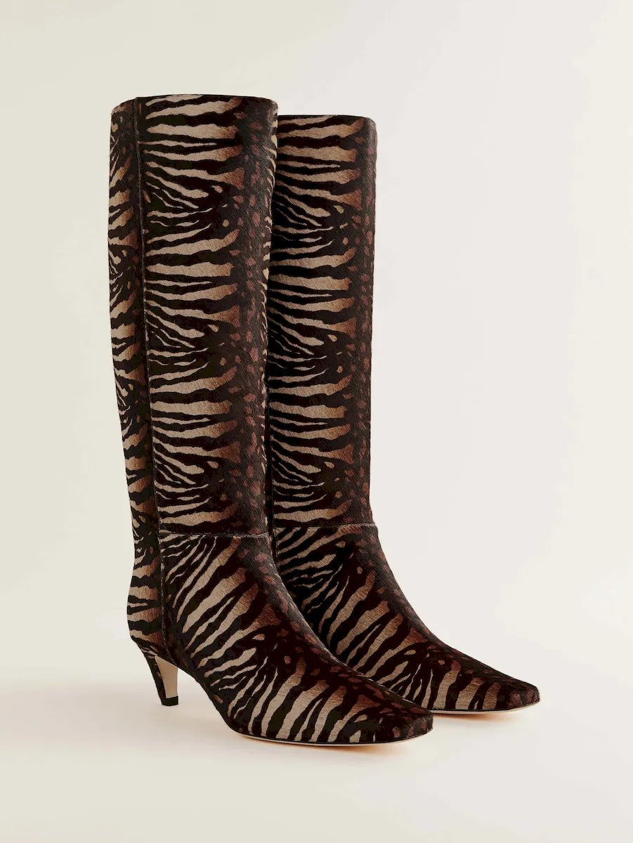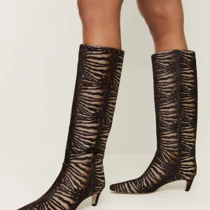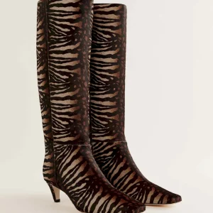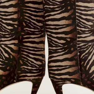 Silky hair calf with distorted animal print pattern. Spot clean. More onfabric & care.