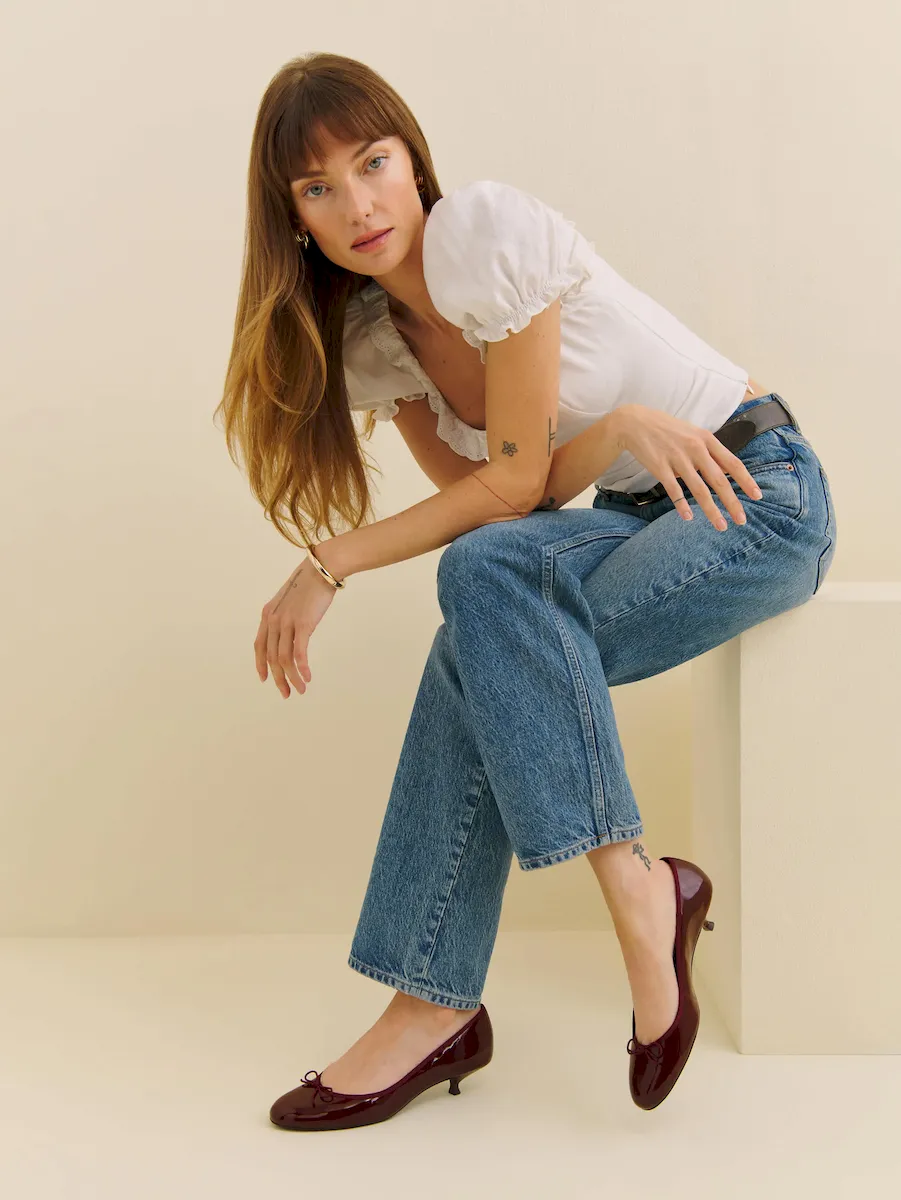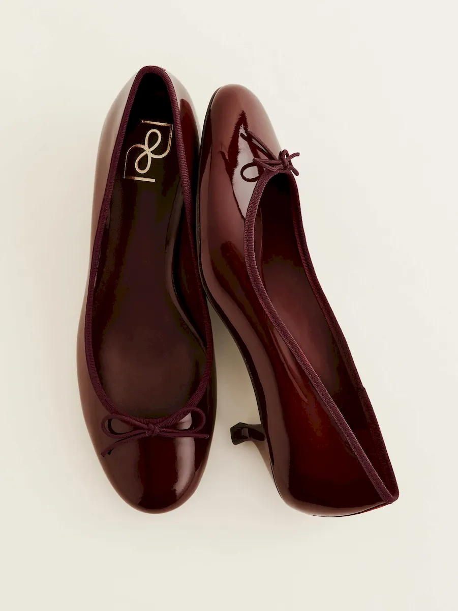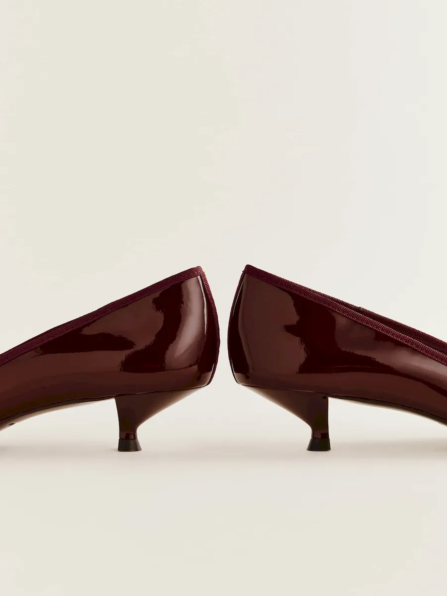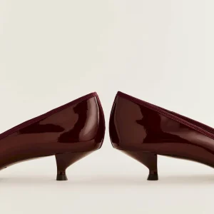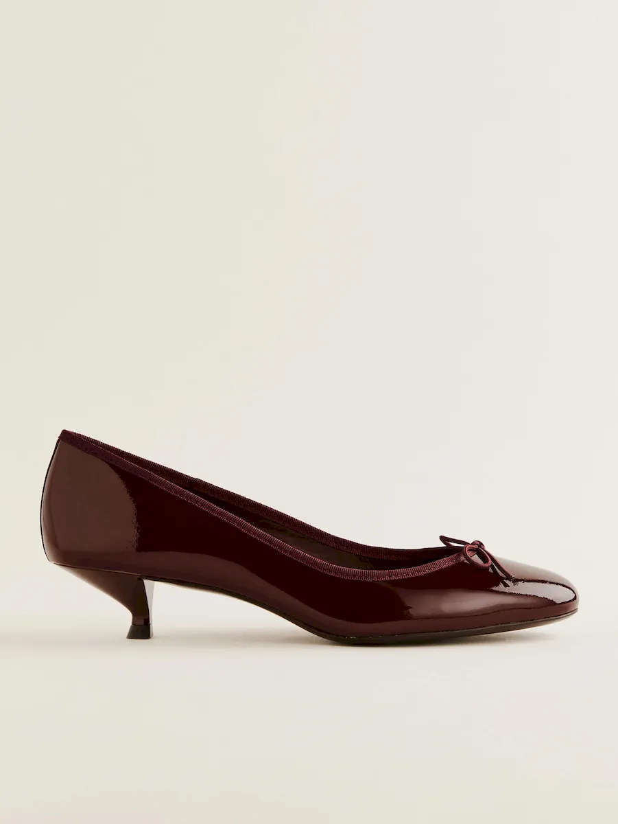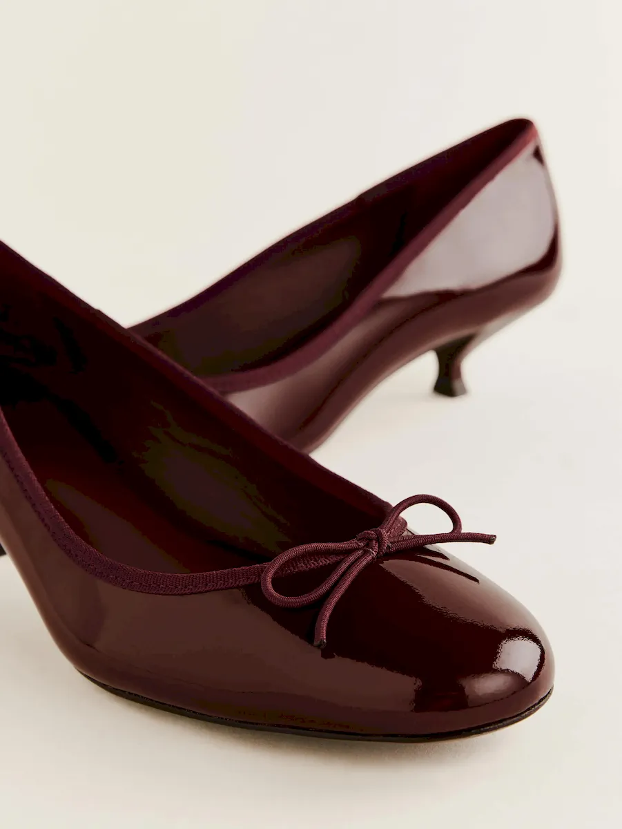 Bovine leather with lustrous patent finish. Spot clean. More onfabric & care.