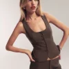 The model is wearing a size 0 and has a 23″ waist, 34″ hips.