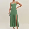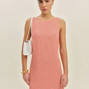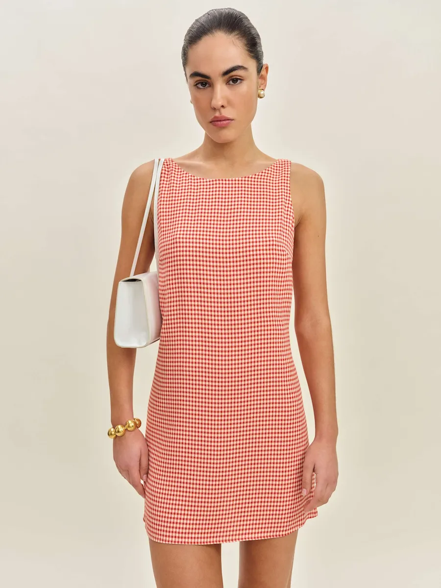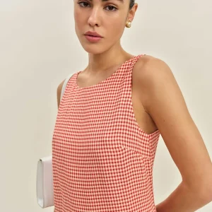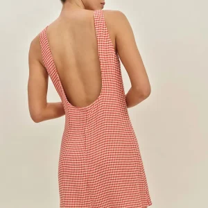 The model is wearing a size 0 and is 5′ 9.5″, 24″ waist, 34.5″ hips, 34″ bust.