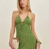 The model is wearing a size 0 and is 5’9″, 23.5″ waist, 34″ hips, 34″ bust.