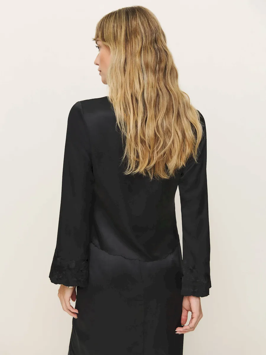 This is a lightweight silk charmeuse fabric made from 100% Silk. Dry clean only. More onfabric & care.