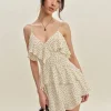 The model is wearing a size 0 and is 5’10”, 23″ waist, 34″ hips, 32″ bust.