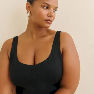 The model is wearing a size 14 and is 5’8″, 33″ waist, 50″ hips, 42″ bust.