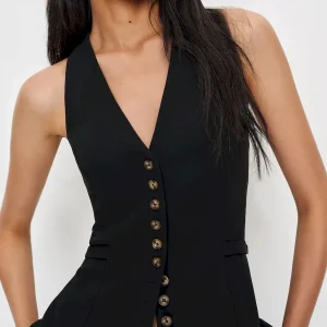 The model is wearing a size 0 and is 5’10”, 24.5″ waist, 34.5″ hips, 31″ bust.