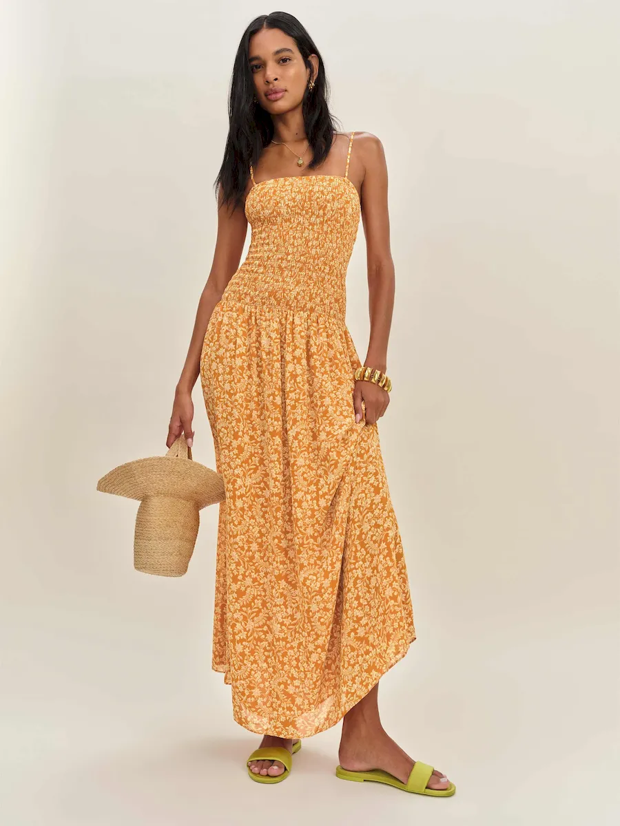 full bodice smocking, straight neckline.