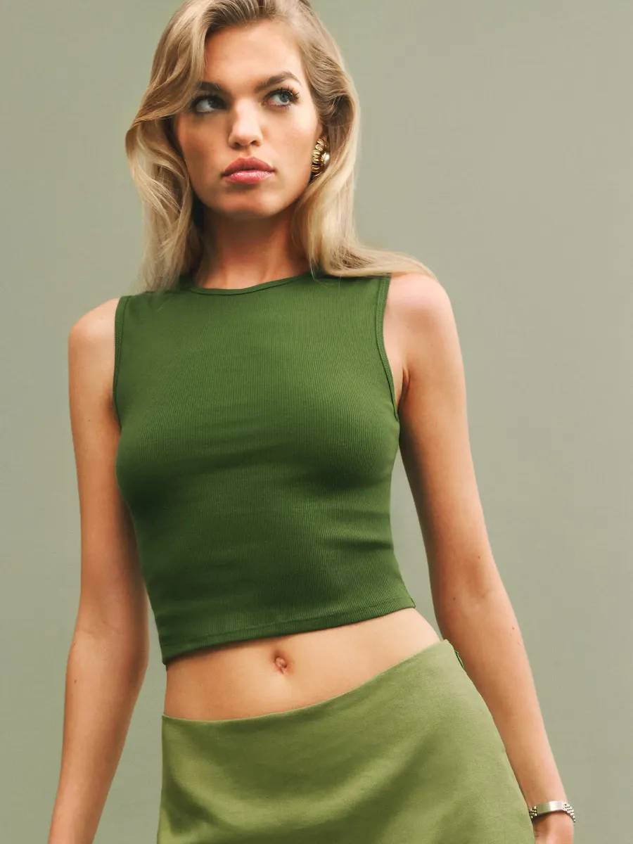 This is a 2×1 medium weight rib knit fabric with moderate stretch made from 97% Organically Grown Cotton and 3% Spandex. Hand wash + dry flat. More onfabric & care.